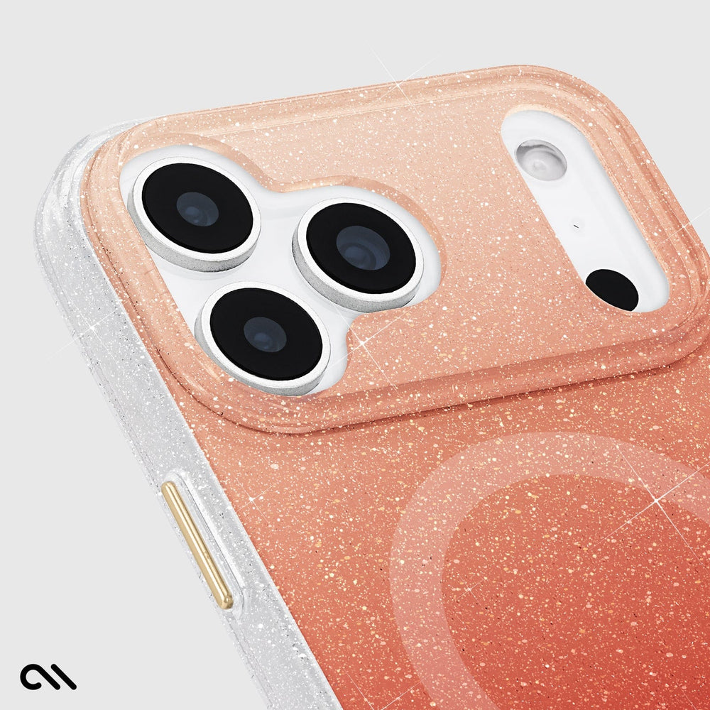 Let your phone shine with the Sheer Twinkle Orange Ombre MagSafe Phone Case for the iPhone 17 Pro! The sparkling orange ombre design catches the light for a perfect shimmering effect, while strong built-in magnets allow for easy MagSafe accessorizing and charging. We know how much you love your phone, so feel confident knowing it’s safe with 12-foot drop protection.
